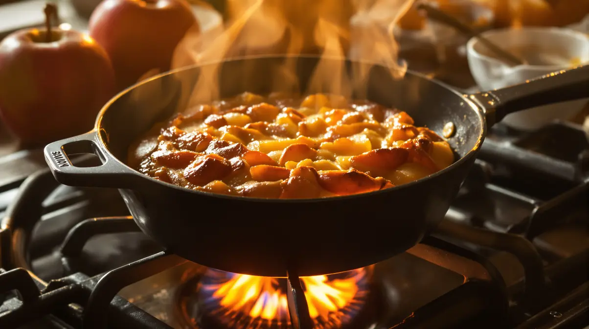 Je prépare ce gâteau aux pommes à la poêle : ultra simple, prêt en 15 minutes, sans four et tellement réconfortant
